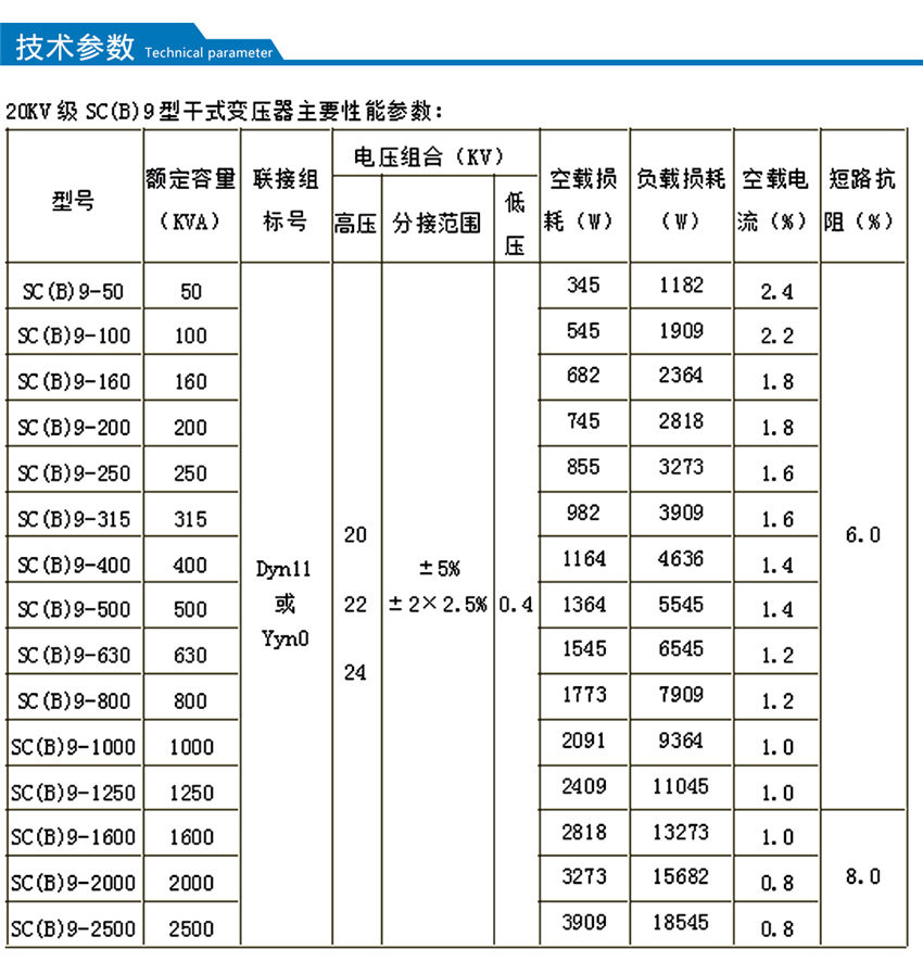 損耗低,局部放電量低噪音小,散熱能力強,強迫風冷條件下可以150%額定負載運行。