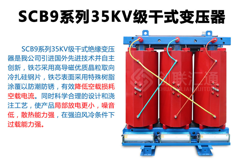 SC(B)9系列35KV環(huán)氧樹(shù)脂干式變壓器新一代節(jié)能產(chǎn)品,該系列配電變壓器產(chǎn)品使用在變壓器電壓直接從35KV電網(wǎng)轉(zhuǎn)變?yōu)?00V配電的特殊場(chǎng)合,可減少10KV輸變電環(huán)節(jié),使運(yùn)行維護(hù)費(fèi)用明顯降低。35KV級(jí)無(wú)勵(lì)磁調(diào)壓配電變壓器產(chǎn)品通過(guò)了家級(jí)鑒定,確立為高新技術(shù)產(chǎn)品。 產(chǎn)品具有損耗低、阻燃性好、承受短路能力強(qiáng)、體積小、噪音低、耐雷電沖擊性能好,溫度分布均勻等優(yōu)點(diǎn),而且由于環(huán)氧樹(shù)脂干式變壓器不使用變壓器油,不會(huì)產(chǎn)生油污染,無(wú)爆炸危險(xiǎn)。產(chǎn)品可作為配電變壓器廣泛適用于電力系統(tǒng)城網(wǎng)改造,也可用于高層建筑、機(jī)場(chǎng)、車(chē)站、港口、地鐵待對(duì)消防、環(huán)保有嚴(yán)格、特殊要求的多種場(chǎng)合。