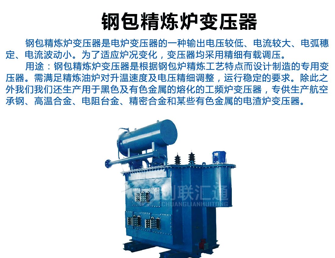 鋼包精煉爐變壓器是根據(jù)鋼包爐精煉工藝特點而設計制造的專用變壓器。需滿足精煉油爐對升溫速度及電壓精細調(diào)整,運行穩(wěn)定的要求。除此之外創(chuàng)聯(lián)匯通電氣還生產(chǎn)用于黑色及有色金屬的熔化的工頻爐變壓器,專供生產(chǎn)航空承鋼、高溫合金、電阻臺金、精密合金和某些有色金屬的電渣爐變壓器。
