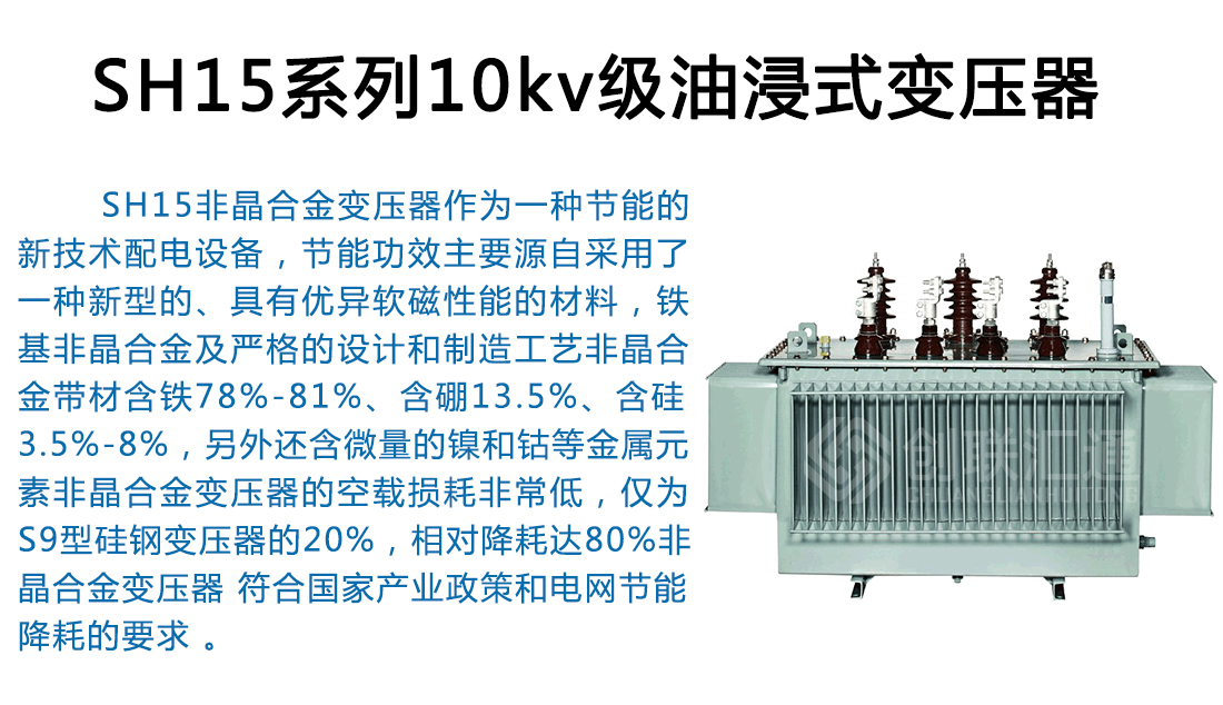 SH15非晶合金變壓器作為一種新一代節(jié)能產(chǎn)品,可以普遍適用于住宅小區(qū)、學(xué)校、工礦企事業(yè)單位以及社會(huì)公共設(shè)施??稍趹魞?nèi)(外)使用,容量在315kVA 及以下時(shí)可安裝在桿上,海拔高度不超過1000m。