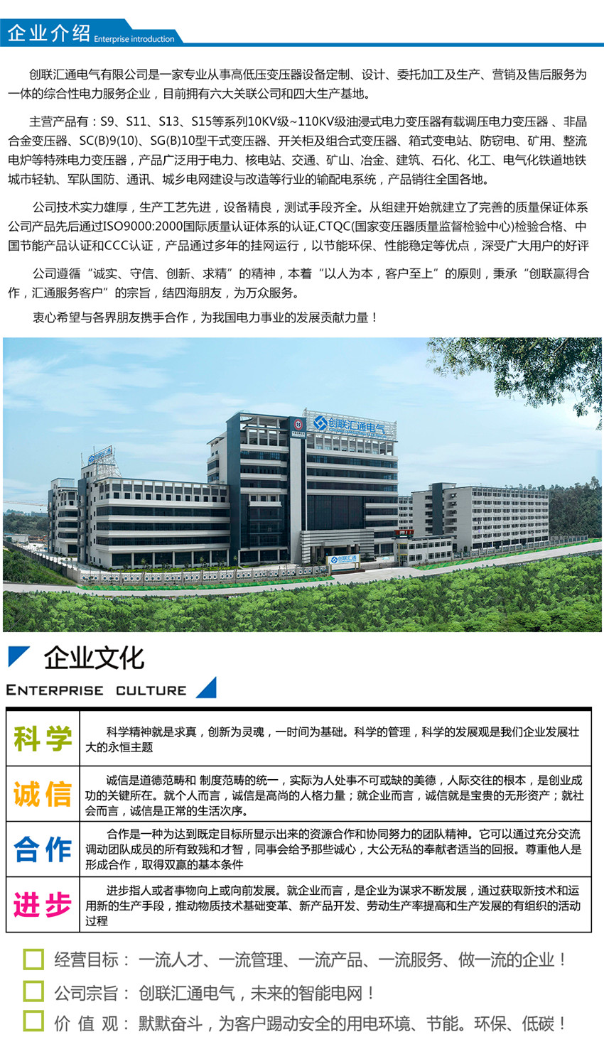 我公司生產(chǎn)的油浸式配電變壓器,器身采用了新型絕緣結(jié)構(gòu),提高了抗短路能力;鐵芯由高質(zhì)量冷軋硅鋼片制成;高壓繞組均選用優(yōu)質(zhì)無氧銅線為材料,并采用多層圓筒式結(jié)構(gòu);所有堅(jiān)固件均采用特殊防松處理。